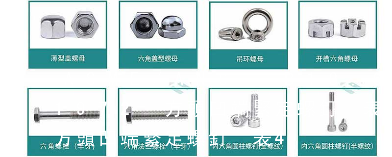 緊定螺釘通常由鋼或不銹鋼材料制造,它的端頭形狀有錐形、凹形、平頭形、圓柱形和階梯形等。錐端或凹端緊定螺釘的端頭直接頂緊零件,一般用于安裝后不常拆卸處;平端緊定螺釘的端頭平滑,頂緊后不損傷零件表面,用于需經 緊定螺釘主要用于固定兩個零件之間的相對位置。特殊用途螺釘例如有吊環螺釘等供吊裝零件用。4. 螺母:帶有內螺紋孔,形狀一般呈顯為扁六角柱形,也有呈扁方柱形或扁圓柱形,配合螺栓、螺柱或機器螺釘,用于緊固連接兩個零件,使之成為一件整體