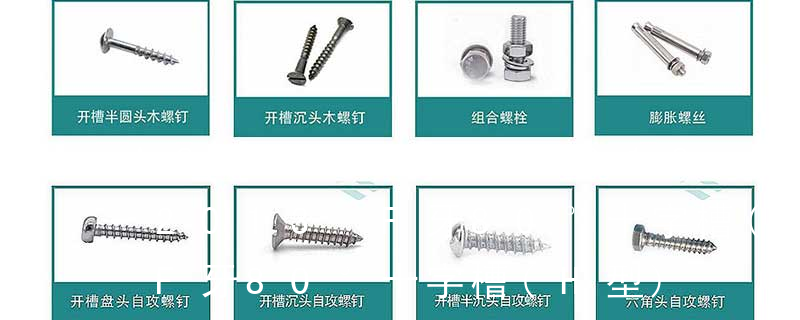 B:球面圓柱頭; C:圓柱頭; F(K):沉頭; H:六角頭;HW:六角頭帶墊圈; O:半沉頭; P:平元頭; R:半元頭;PW:平元頭帶墊圈; T:大扁頭; V:蘑菇頭;④ 螺釘牙型 A:自攻尖尾(日標(biāo)第1種)疏 (鐵板牙自攻螺絲) B-2: Plastic Tapping Screw. (塑膠用,自攻螺絲) C: Wooden Screw : 木工螺絲 D: Drywall Screw :水泥墻螺絲 E: Self Drilling Screws鉆尾螺絲(不銹鋼鉆尾螺絲,復(fù)合材料鉆尾螺絲) F:膨脹螺絲,四片膨脹螺絲又